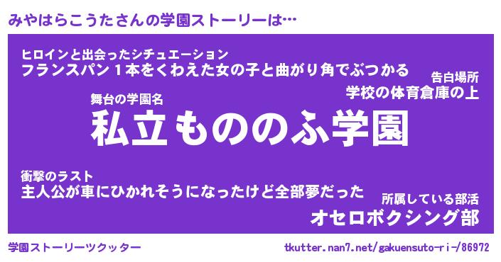 | 男性向けラノベタイトル風あだ名 | 『みやはらこうたの憂鬱』 |