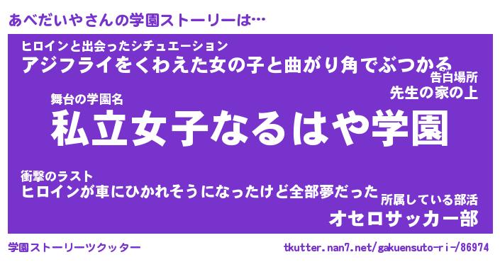 | 男性向けラノベタイトル風あだ名 | 『アベダイヤアートオンライン』 |