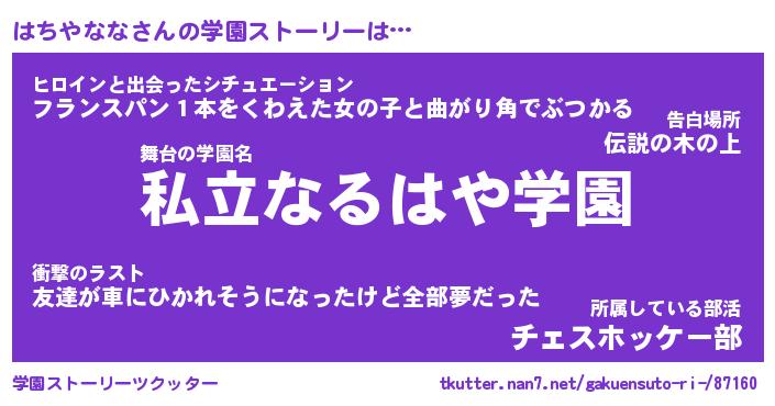 | 男性向けラノベタイトル風あだ名 | 『はちやななの憂鬱』 |