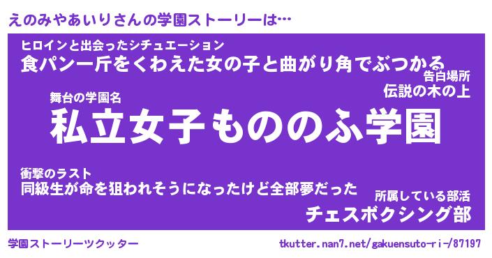 | 恥ずかしいあだ名 | 『プリティーえのみやあいり』『えのちん』 |