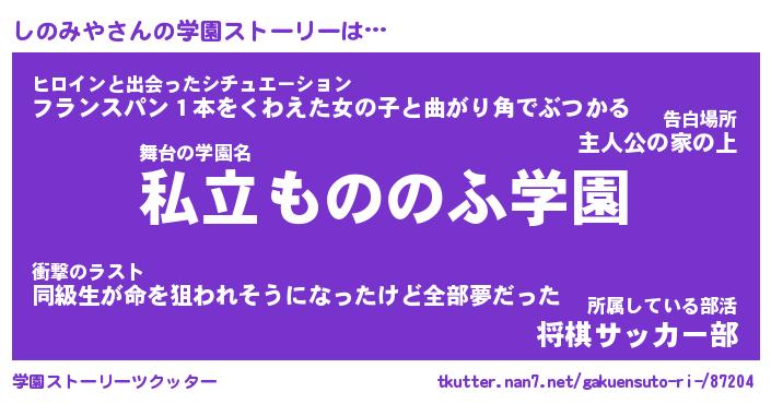 | 男性向けラノベタイトル風あだ名 | 『しのみやの憂鬱』 |