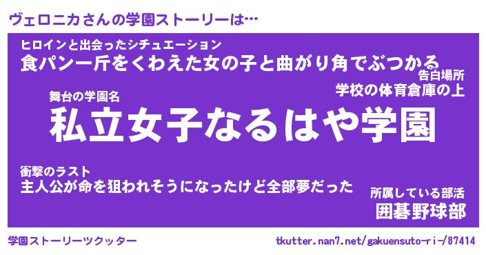 | ヒーロー風カッコイイあだ名 | 『スーパーヴェロニカ』『暗黒騎士ヴェ』 |