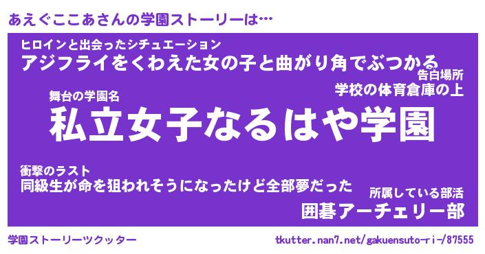 | 伝説のあだ名 | 『封印されしスナイパーあえぐここあ』 |