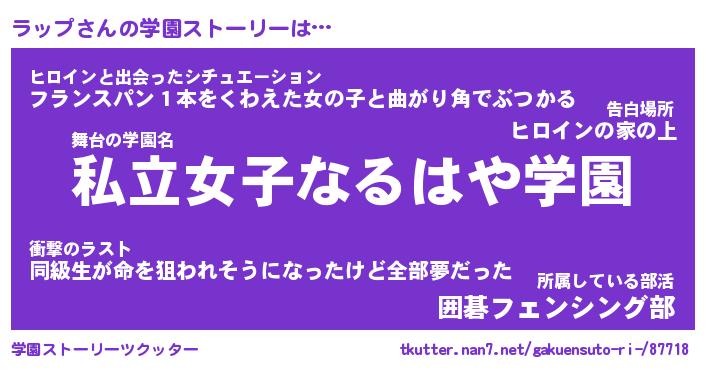 | 女子向けラノベタイトル風あだ名 | 『誰かこのラップを説明してください! ~契約から始まるウェディング~』 |