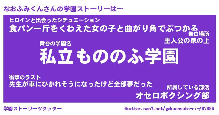 | 女子向けラノベタイトル風あだ名 | 『(仮)なおふみくんのやんごとなき事情』 |