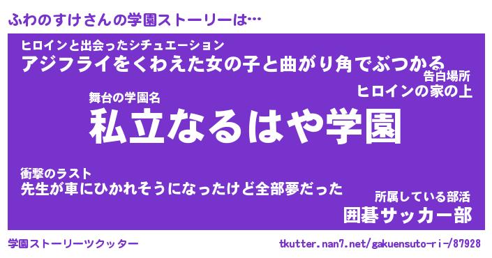 | 伝説のあだ名 | 『伝説のスナイパーふわのすけ』 |