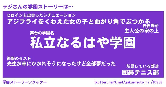 | 告白場所 先生の家の上 …「ふぃぎゅこ」 | 2月17日 06:24 |
