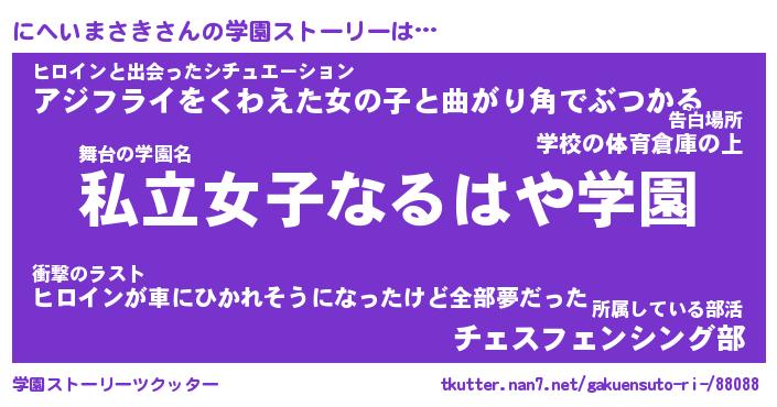 | 伝説のあだ名 | 『封印されしスナイパーにへいまさき』 |