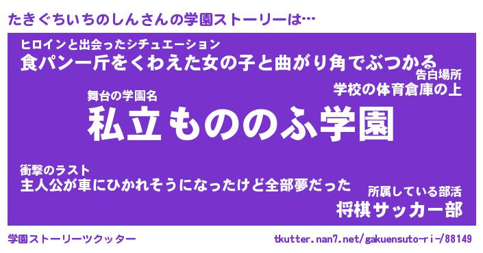 | 女子向けラノベタイトル風あだ名 | 『(仮)たきぐちいちのしんのやんごとなき事情』 |