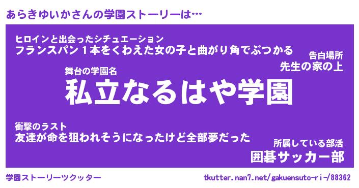 | 伝説のあだ名 | 『伝説のスナイパーあらきゆいか』 |