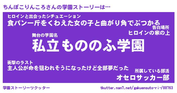 | 男性向けラノベタイトル風あだ名 | 『ちんぽこりんころの憂鬱』 |