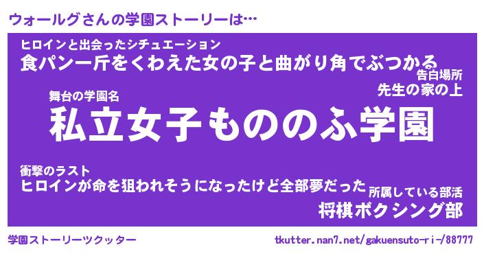 | ヒーロー風カッコイイあだ名 | 『スーパーウォールグ』『暗黒騎士ウォ』 |