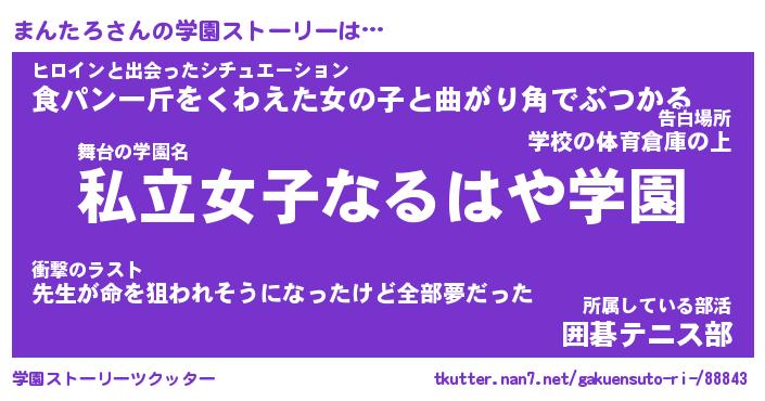 | 告白場所 先生の家の上 …「ふぃぎゅこ」 | 2月17日 06:24 |
