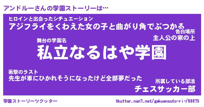 | ファンタジー風あだ名 | 『アンフェル』『エターナルアンドルーー』 |