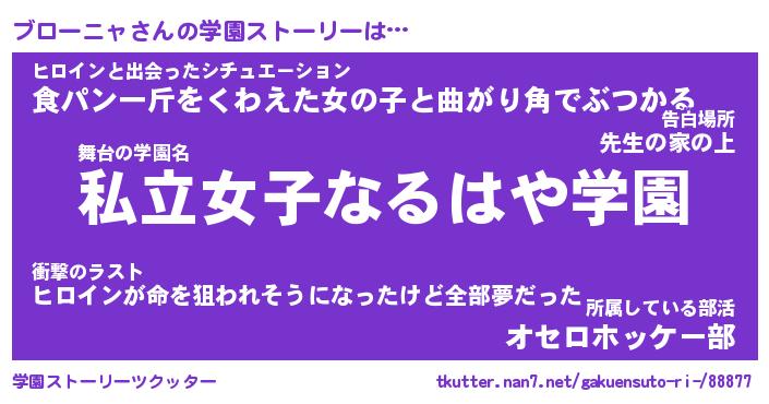| 女子向けラノベタイトル風あだ名 | 『誰かこのブローニャを説明してください! ~契約から始まるウェディング~』 |