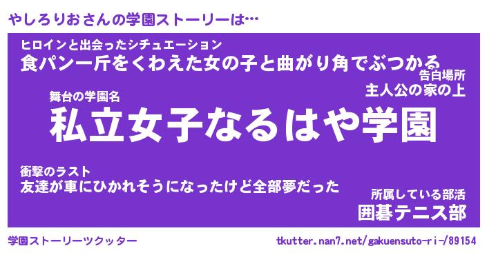 | 伝説のあだ名 | 『封印されしスナイパーやしろりお』 |