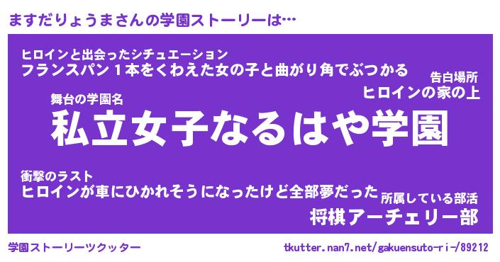 | 女子向けラノベタイトル風あだ名 | 『誰かこのますだりょうまを説明してください! ~契約から始まるウェディング~』 |