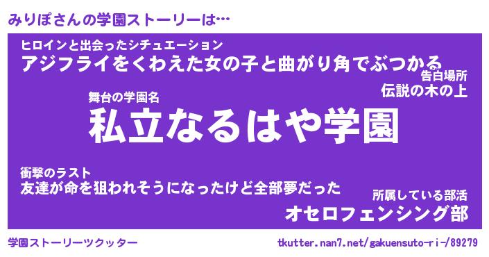 | 女子向けラノベタイトル風あだ名 | 『(仮)みりぽのやんごとなき事情』 |