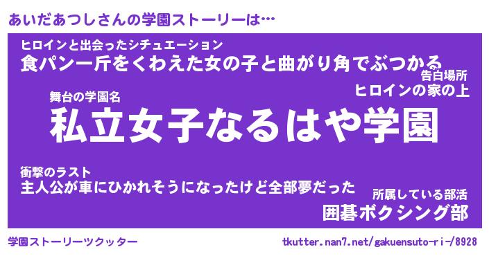 | 伝説のあだ名 | 『不死鳥のスナイパーあいだあつし』 |