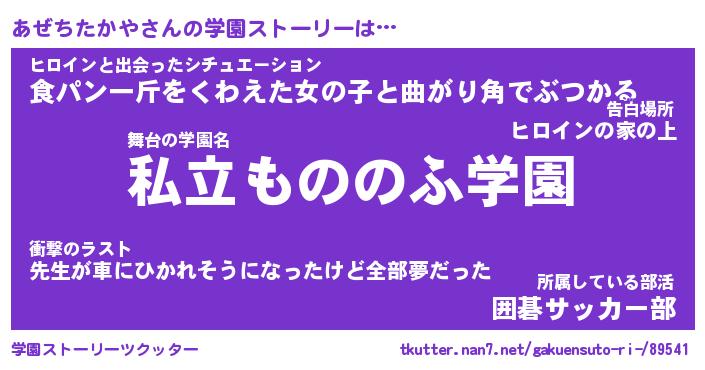 | 女子向けラノベタイトル風あだ名 | 『(仮)あぜちたかやのやんごとなき事情』 |