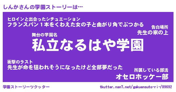 | 男性向けラノベタイトル風あだ名 | 『しんかの憂鬱』 |
