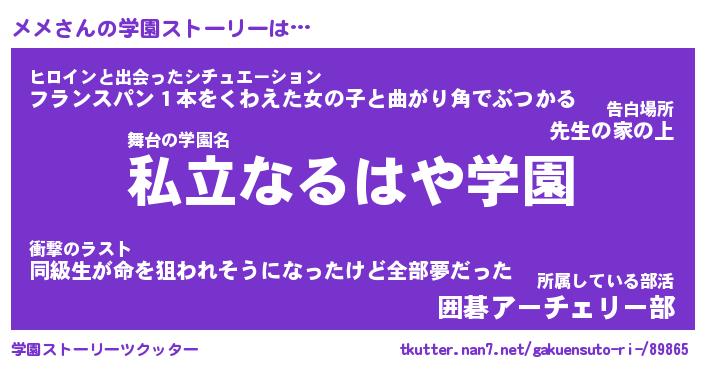 | 男性向けラノベタイトル風あだ名 | 『メメの憂鬱』『ノーゲーム・ノーメメ』 |