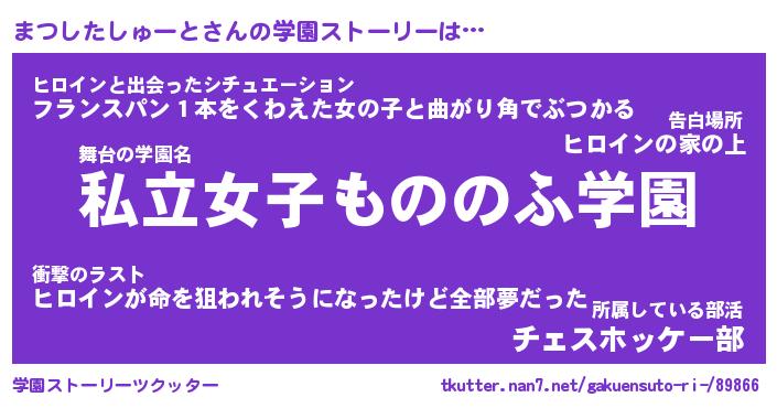 | 女子向けラノベタイトル風あだ名 | 『まつしたしゅーと姫と円卓の騎士』 |