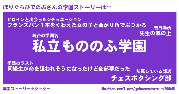 | 女子向けラノベタイトル風あだ名 | 『(仮)ほりぐちひでのぶのやんごとなき事情』 |