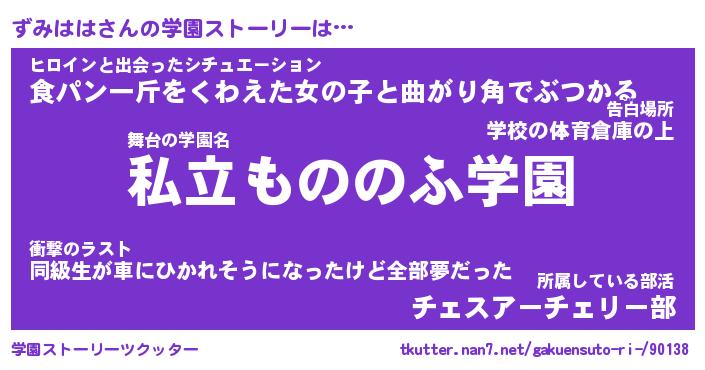 | 男性向けラノベタイトル風あだ名 | 『ずみははの憂鬱』 |
