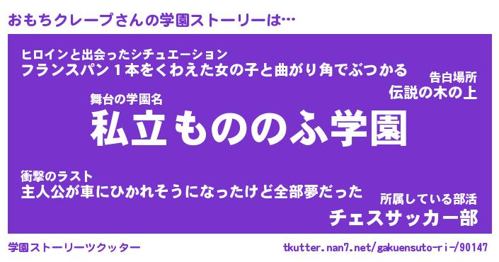 | 男性向けラノベタイトル風あだ名 | 『おもちクレープの憂鬱』 |