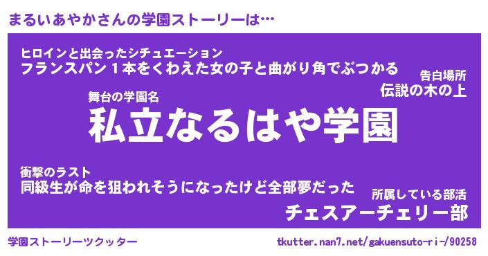 | 女子向けラノベタイトル風あだ名 | 『(仮)まるいあやかのやんごとなき事情』 |