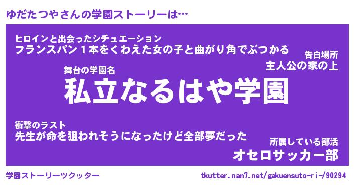 | 女子向けラノベタイトル風あだ名 | 『(仮)ゆだたつやのやんごとなき事情』 |