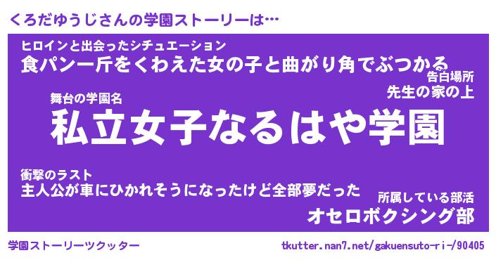 | ヒーロー風カッコイイあだ名 | 『スーパークロダユウジ』『炎刃騎士クロ』 |