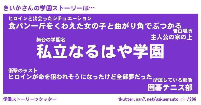 | 女子向けラノベタイトル風あだ名 | 『(仮)きいかのやんごとなき事情』 |