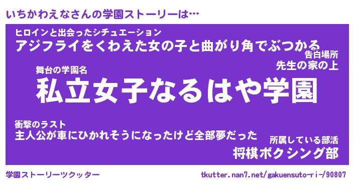 | ヒーロー風カッコイイあだ名 | 『スーパーイチカワエナ』『銀牙騎士イチ』 |