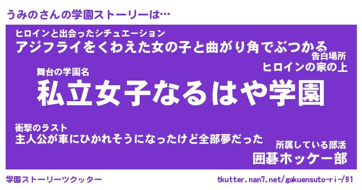 | 女子向けラノベタイトル風あだ名 | 『うみの姫と円卓の騎士』『うみの恋絵巻』 |