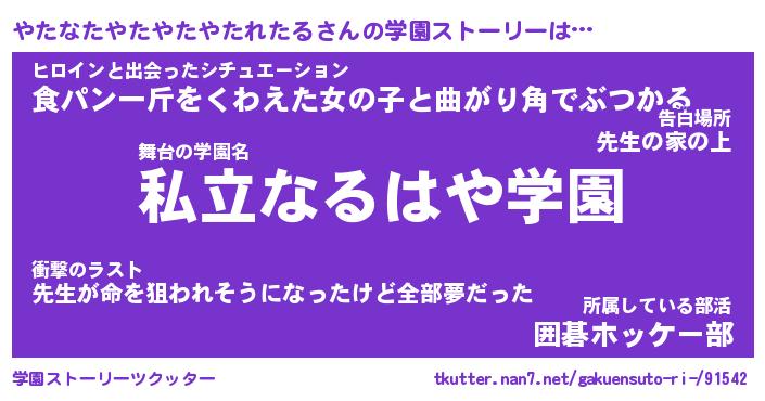 | 先生 | やたなたやたやたやたれたる先生が勤める学校名『市立ささくれ高校』 |