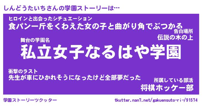 | 伝説のあだ名 | 『封印されしスナイパーしんどうたいち』 |
