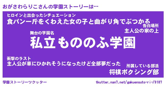 | 男性向けラノベタイトル風あだ名 | 『おがさわらりこの憂鬱』 |