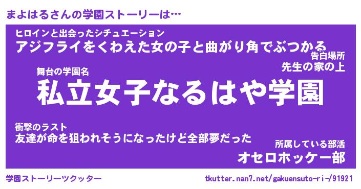 | 意味不明あだ名 | 『ペロリンまよはる』『永久保存まよはる』 |