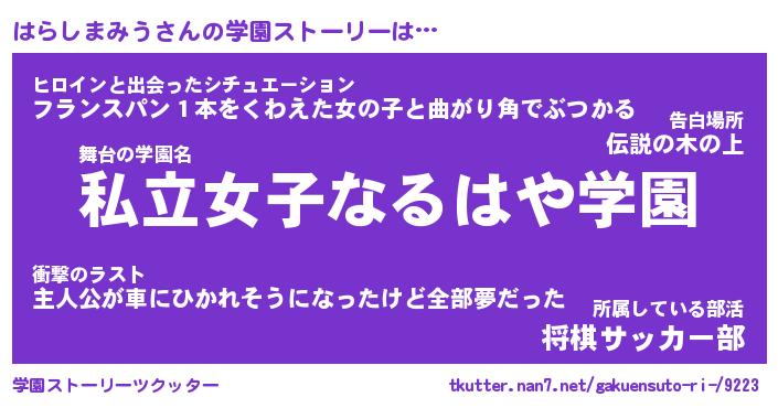 | 伝説のあだ名 | 『封印されしスナイパーはらしまみう』 |