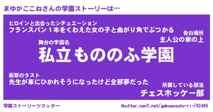 | 女子向けラノベタイトル風あだ名 | 『(仮)まゆかここねのやんごとなき事情』 |