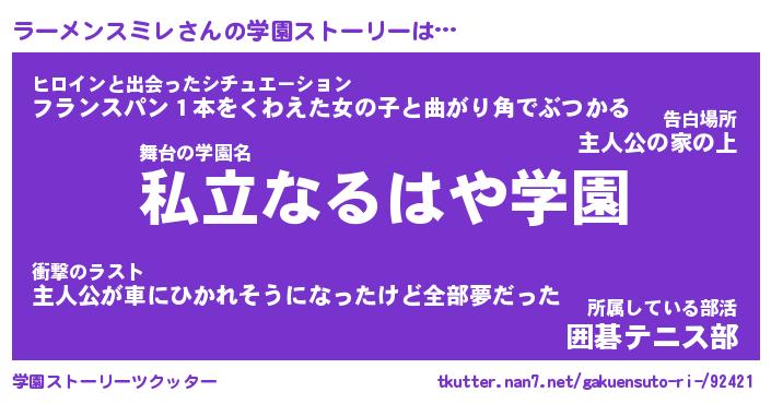 | 男性向けラノベタイトル風あだ名 | 『ラーメンスミレの憂鬱』 |