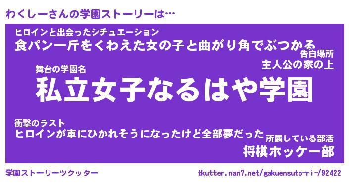 | 意味不明あだ名 | 『ペロリンわくしー』『永久保存わくしー』 |