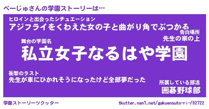 | 意味不明あだ名 | 『ペロリンべーじゅ』『永久保存べーじゅ』 |