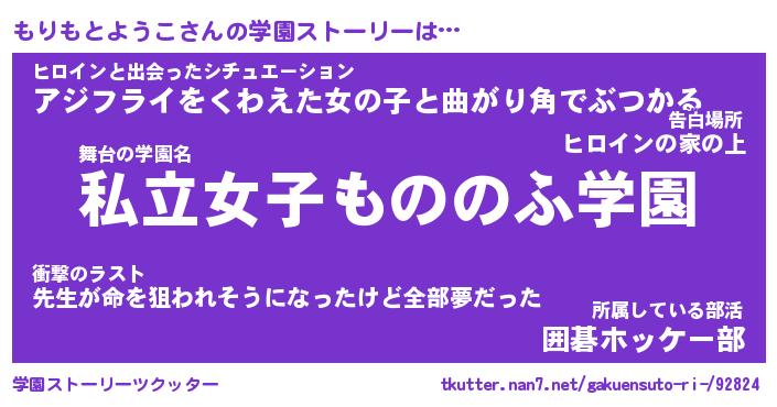 | 女子向けラノベタイトル風あだ名 | 『誰かこのもりもとようこを説明してください! ~契約から始まるウェディング~』 |