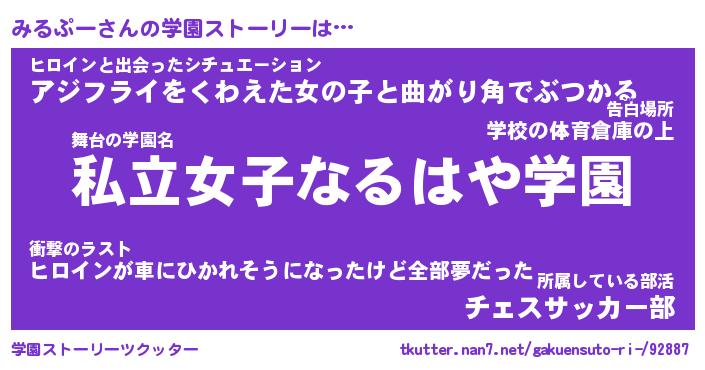 | ファンタジー風あだ名 | 『ミルフェル』『エターナルミルプーー』 |
