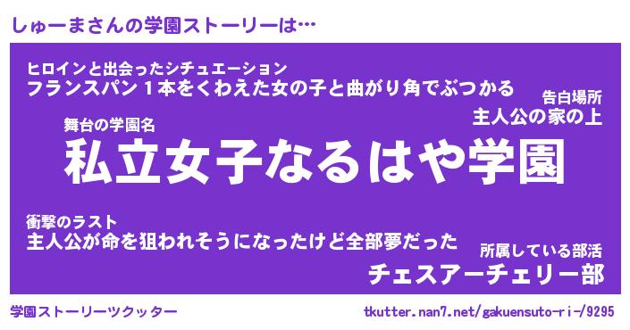 | 女子向けラノベタイトル風あだ名 | 『しゅーま姫と円卓の騎士』 |