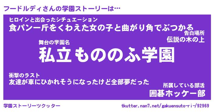 | 男性向けラノベタイトル風あだ名 | 『フードルディの憂鬱』 |