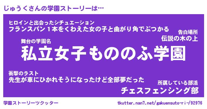 | ファンタジー風あだ名 | 『ジュフェル』『エターナルジュウクー』 |